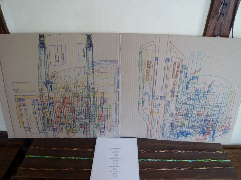 ゆうちゃんの絵。上のボードは紹介文。