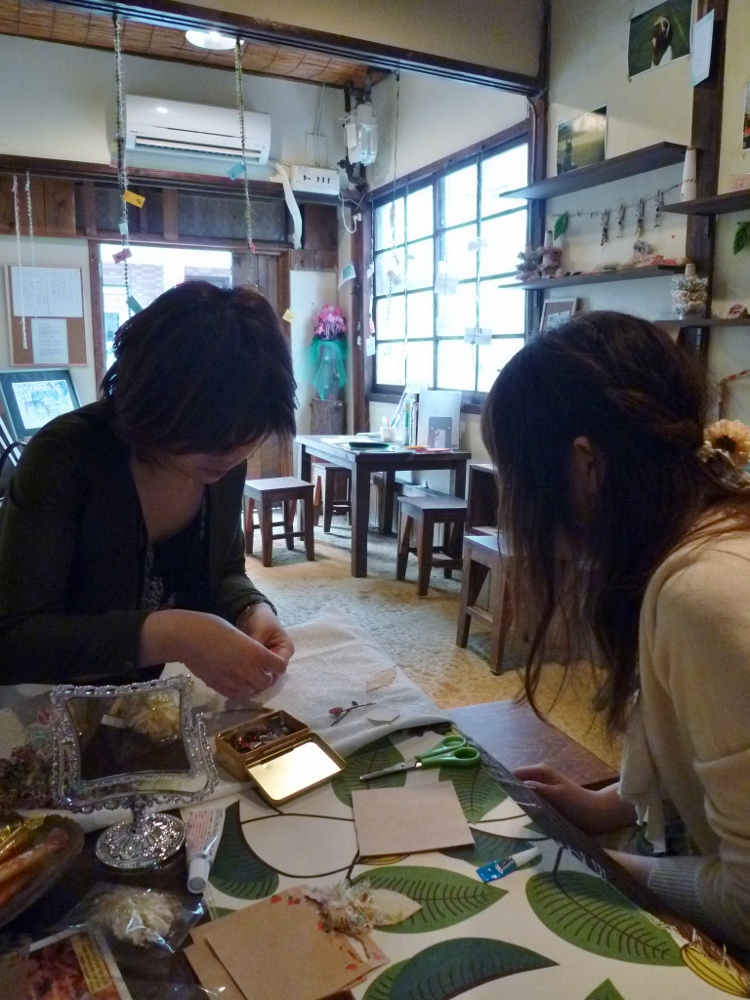アクセサリーづくりのワークショップの様子。(手前がみどりん)