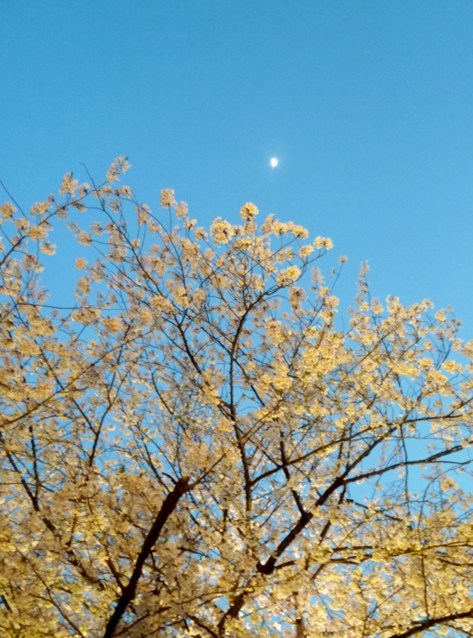 まだ明るい時間に遠くの空に見えた月がなんとも儚げで。